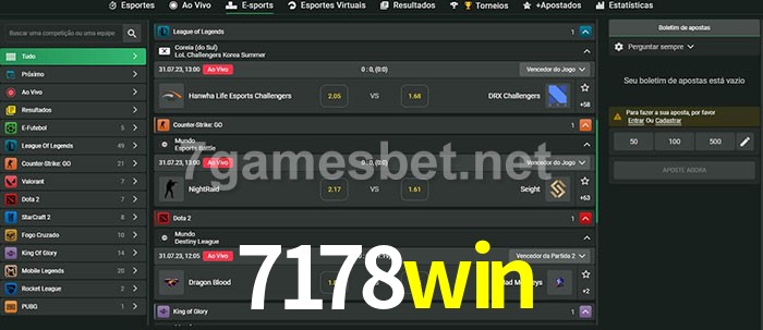 O 7178win oferece uma grande seleção de opções de apostas em e-sports com probabilidades competitivas
